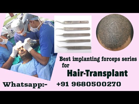 Angular implanting forceps have an extremely fine tip and special ergonomic curve so as to provide extra ease in implanting the grafts.